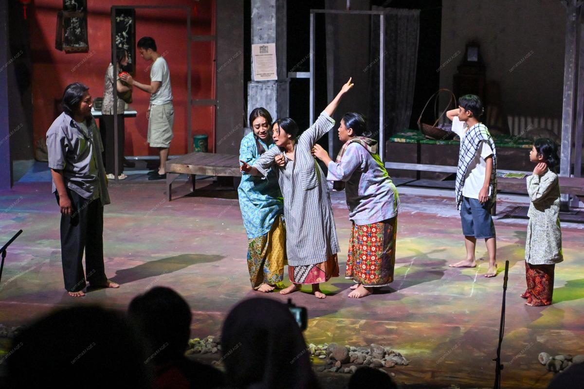 KUALA LUMPUR, 1 Okt -- Teater Sungai Mengalir Lesu karya klasik Sasterawan Negara Datuk Seri Dr Abdul Samad Mohamed Said atau A. Samad Said kembali dipentaskan di Auditorium Dewan Bahasa dan Pustaka (DBP) selama empat hari bermula 8.30 malam ini.Naskhah terbitan 1967 itu menampilkan pelbagai watak daripada masyarakat berbilang kaum yang terhimpit dengan penderitaan akibat kebuluran, seksaan tentera Jepun dan ugutan maut yang menghantui kehidupan seharian mereka.Antara barisan pelakon utama ialah Akmal Ahmad, pelakon muda berbakat besar yang memegang watak Basir, karakter kompleks yang menjadi tunjang cerita berlatar belakangkan Singapura ketika era Perang Dunia Kedua.--fotoBERNAMA (2025) HAK CIPTA TERPELIHARA